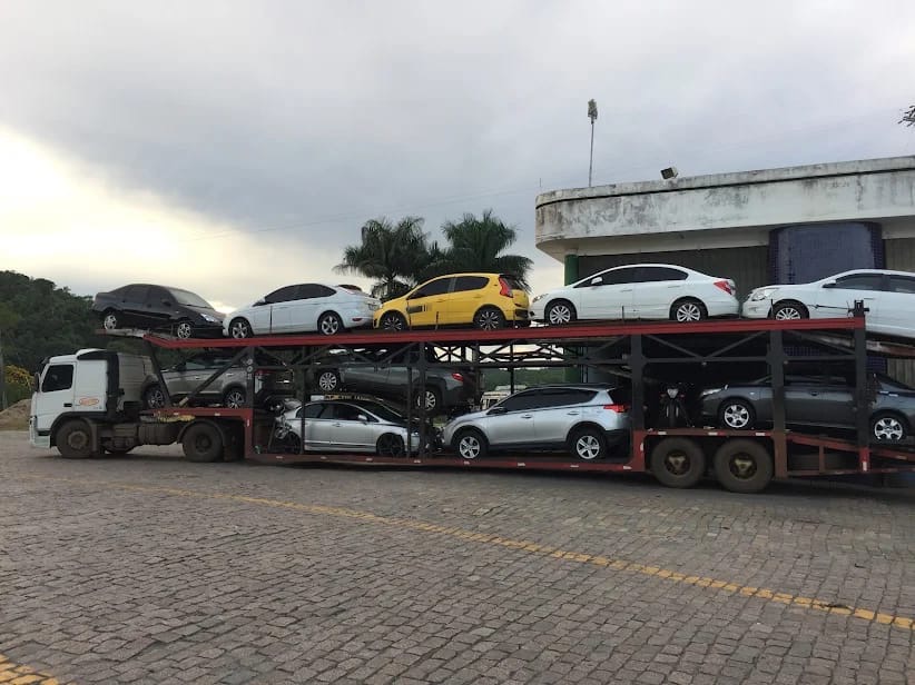 Transporte de veículos maiores com estrutura especializada.